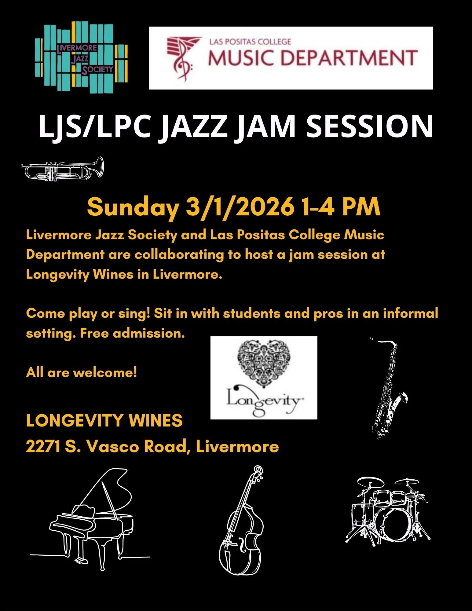 LJS is hosting a collaborative jam session with Las Positas College at Longevity Wines, 2271 S. Vasco Road, Livermore CA 94550.